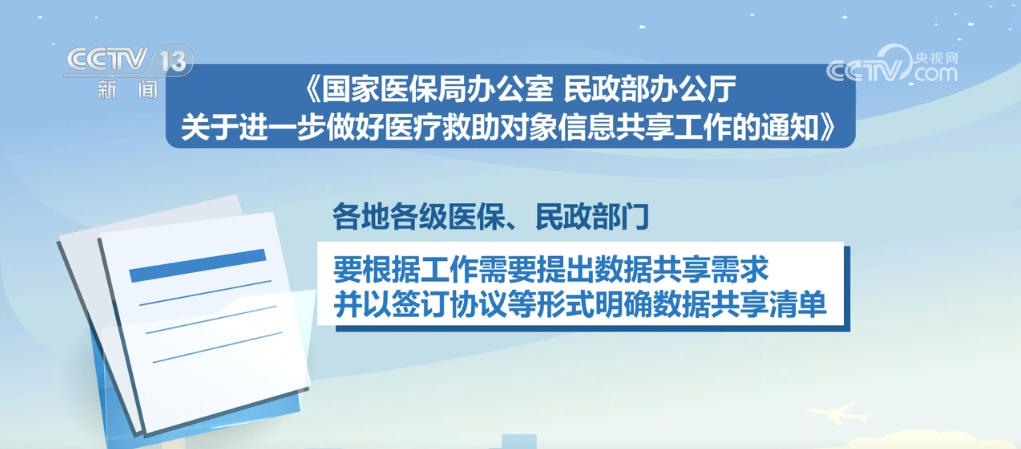 《通知》要求各地逐级建立健全部门间信息共享工作机制,明确要求尚未建立信息共享机制的地区,要在2024年年底前建立覆盖有关部门的医疗救助对象信息共享机制。信息共享频次上,提出原则上每月不低于1次。