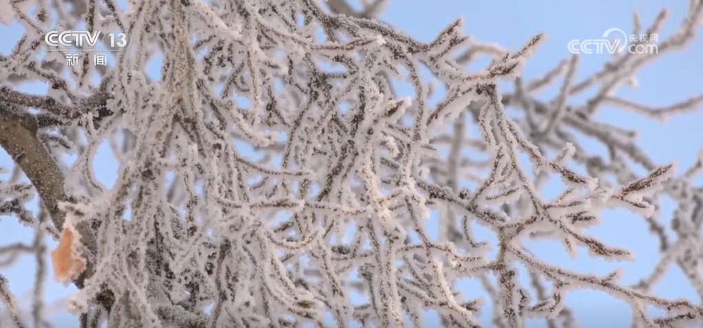 在雾气的作用下,黑龙江江畔的树木都凝结了一层冰晶,原本绿色的松柏好像覆盖了一层白纱,在蓝天白云的映衬下格外显眼。黑龙江呼玛段也进入流冰期,大面积的冰排相互簇拥、顺江而下,与雾凇美景相呼应,吸引了许多市民游客驻足拍照。