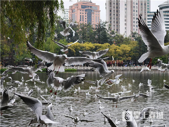 11月8日,记者从昆明翠湖公园获悉,2天前,约100余只红嘴鸥组成“先锋部队”飞落翠湖公园九曲桥、燕子桥水域,由于数量不断增加,目前,翠湖公园已有1000余只红嘴鸥。