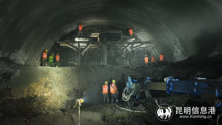 当天上午,随着挖掘机的掘进,位于云南省曲靖市会泽县境内,全长7268米的那寨箐隧道安全贯通,这是渝昆高铁云南段贯通的首座7公里以上隧道,也是整个工程的重要节点。截至目前,渝昆高铁云南段隧道已贯通29座,隧道贯通超过一半,为渝昆高铁全线建成通车奠定了坚实基础。