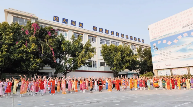 在操场上,师生们每天定时进行民族团结大课间活动,以民族舞蹈和歌曲为主题,融入了傣族、拉祜族、佤族等少数民族的文化元素。孩子们在欢快的歌声和舞蹈中锻炼身体,同时也在心灵深处种下了对民族文化的热爱与尊重。