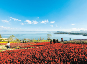 最美环湖路上的云海花田。