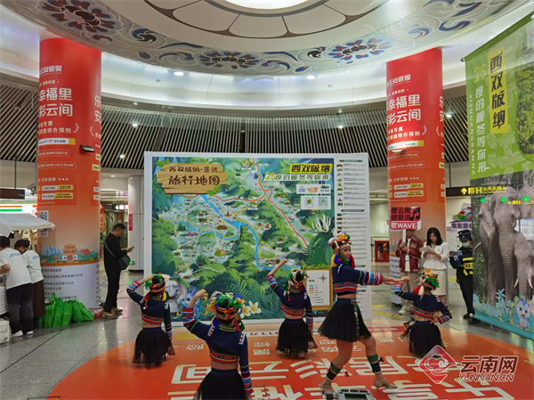 11月16日,昆明地铁携手云南省西双版纳傣族自治州景洪市文化和旅游局在东风广场地铁站举办了“28度的暖冬等你来——西双版纳”主题活动。