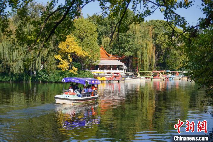 11月15日,游客在翠湖公园划船。初冬时节,昆明天气晴好,温暖宜人,众多市民和游客来到户外,感受春城冬日的别样魅力。中新社记者 刘冉阳 摄