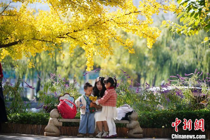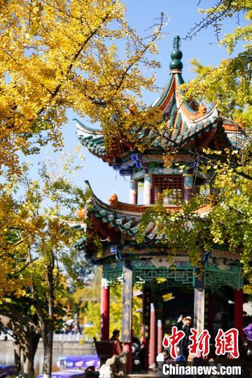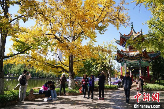 11月15日,翠湖公园金黄的银杏吸引游人。初冬时节,昆明天气晴好,温暖宜人,众多市民和游客来到户外,感受春城冬日的别样魅力。中新社记者 刘冉阳 摄