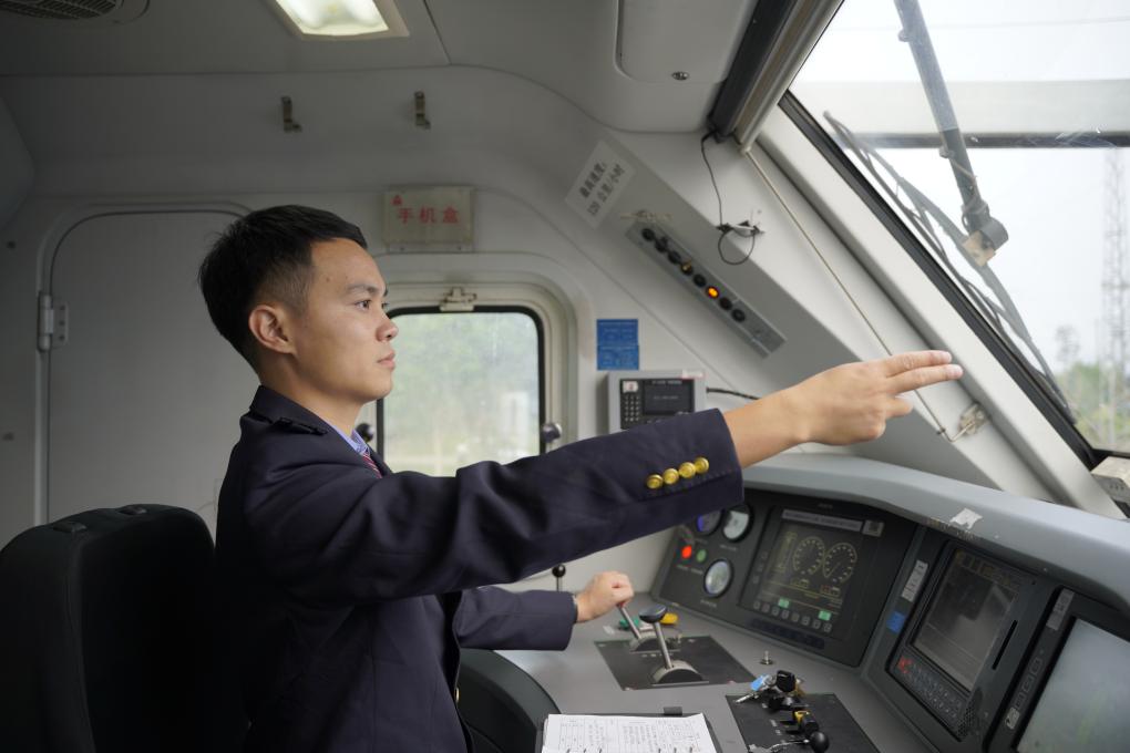 作为第10万列中欧班列的驾驶员,李峰稳步登上驾驶室,缓解制动机、推动前进手柄……熟练地完成一系列发车前准备工作,列车缓缓启动。