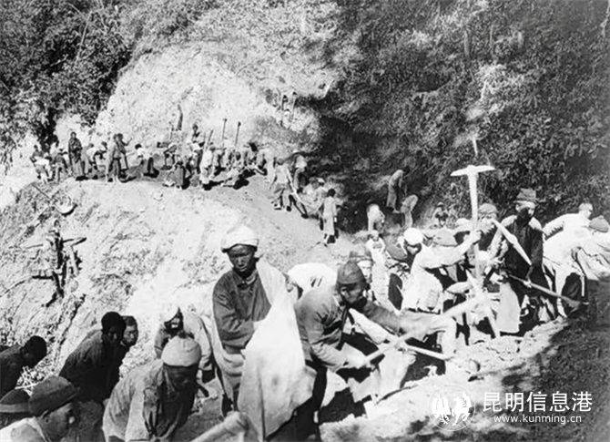 云南人民当年舍生忘死修建滇缅公路的照片。供图