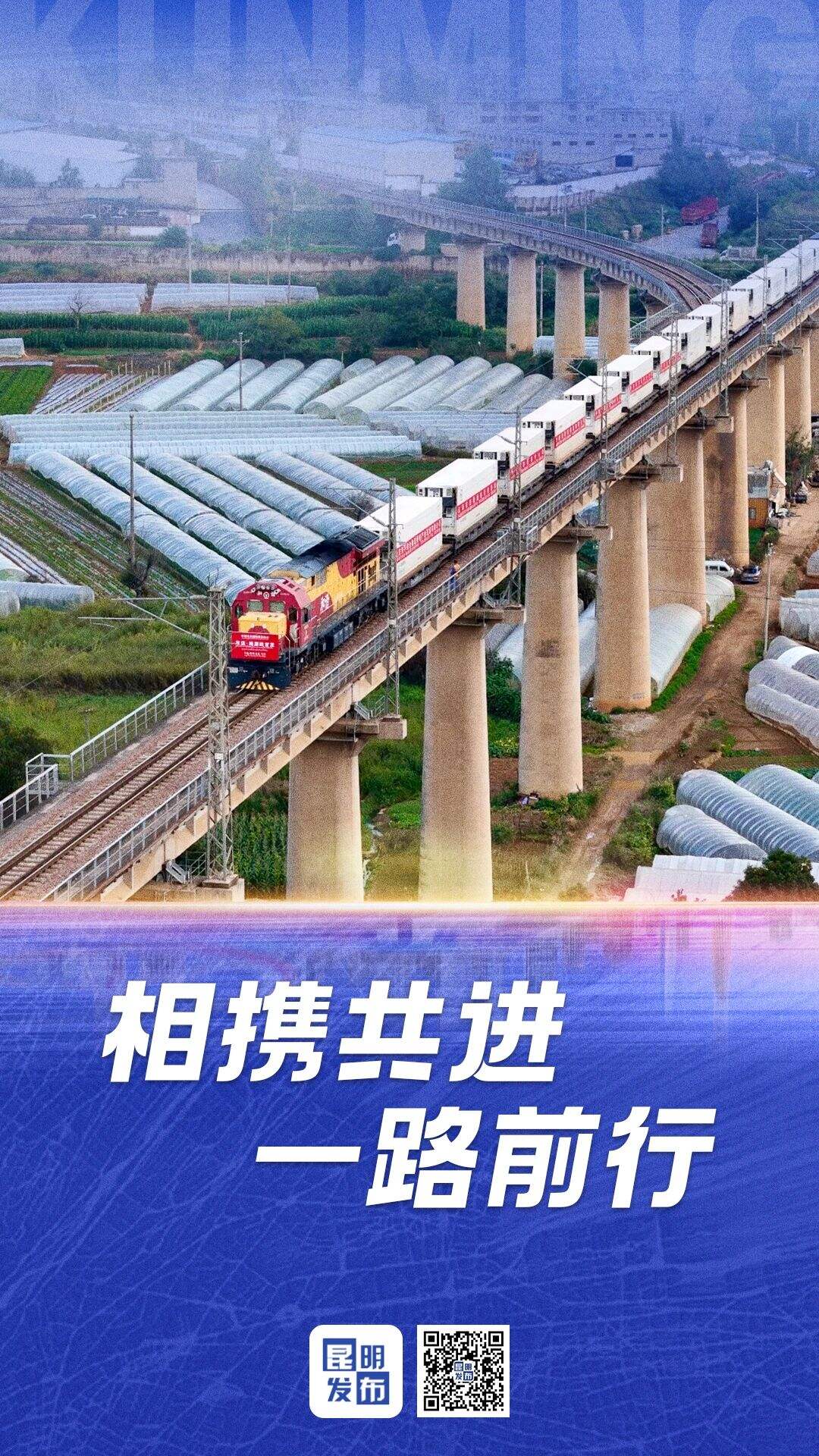 作为中老铁路起始站的昆明昂起发展的“龙头”。在位于中国(云南)自由贸易试验区昆明片区王家营的中铁联集昆明中心站,柜式集装箱堆放得整整齐齐,工作人员每天都驾驶着装卸设备把柜式集装箱装上列车。这里是云贵地区面积最大、设施最完备的集装箱专业化场站,也是云南省唯一配置海关监管作业场所的集装箱铁路场站。作为昆明铁路枢纽中唯一的一级物流节点和云南省铁路网、公路网的集结中心和中老铁路国际班列省内起点站,这里承载着云南铁路网约60%的中老发送货运量,承担着云南铁路网50%的集装箱班列开行量。铁路部门积极探索培育“中老铁路+中欧班列”“中老铁路+西部陆海新通道班列”的国际联运新模式,先后打造了沪滇•澜湄线、粤滇•澜湄线、湘滇•澜湄线、京滇•澜湄线等国际货运班列品牌,实现了中老铁路与西部陆海新通道、中欧班列的互联互通。