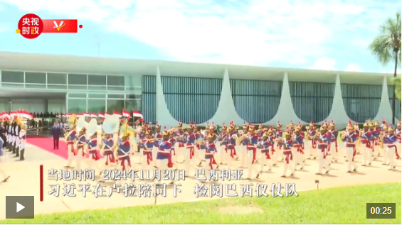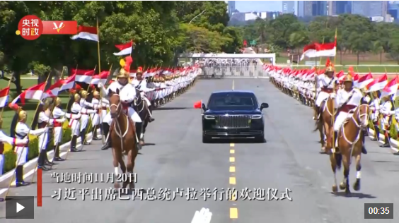 当地时间11月20日,习近平主席乘车抵达巴西总统官邸,出席卢拉举行的欢迎仪式。