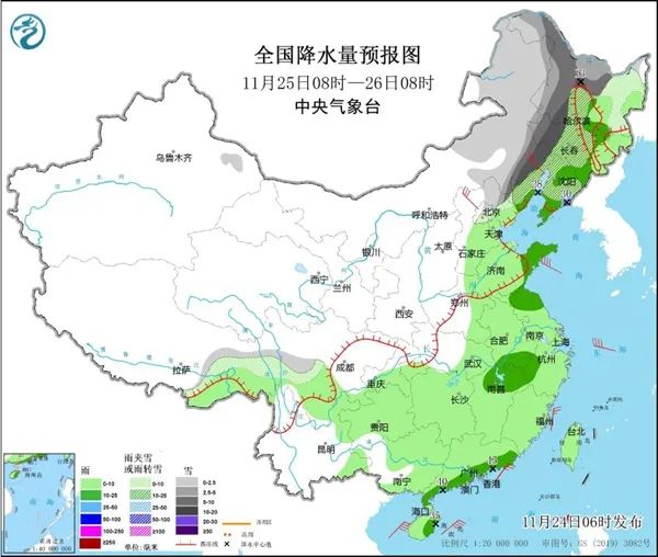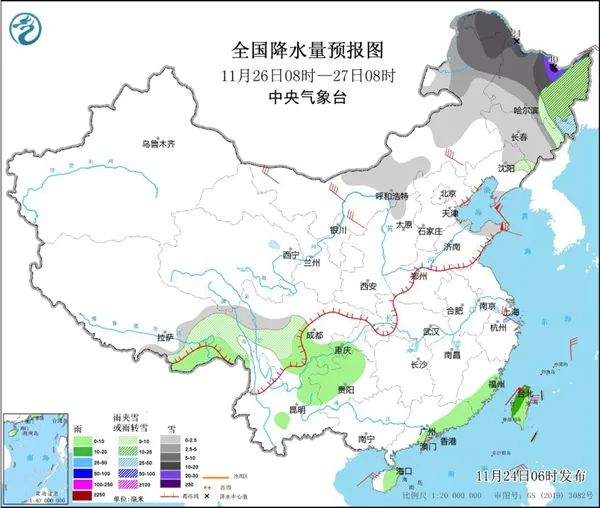 11月24日至27日,寒潮继续影响我国,西北地区东部、华北北部、内蒙古和东北等地部分地区降温12~14℃,局地16℃以上,公众请注意防寒保暖。同时,未来三天,大范围雨雪天气持续,黑龙江、内蒙古东部等地累计降雪量大,局地有大暴雪甚至特大暴雪,需注意防范。