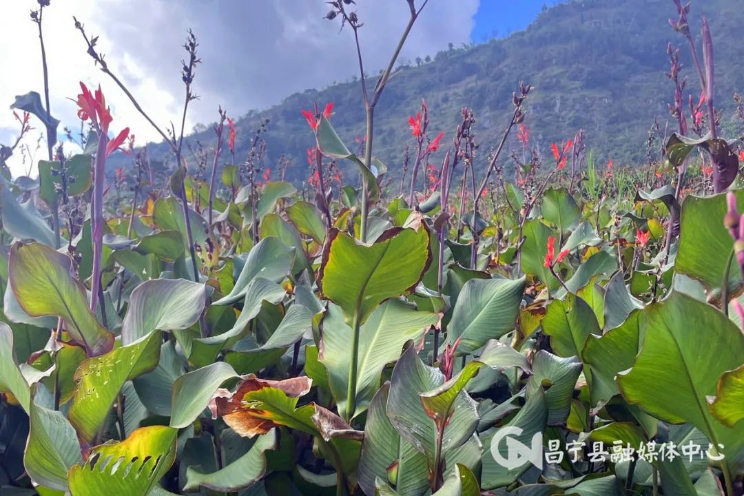 眼下的漭水镇明华村,只见郁郁葱葱的芭蕉芋连接成片,鲜红的芭蕉芋花蕾随风摆动,粗壮的茎秆下一颗颗饱满的芭蕉芋果实从土里探出头来,预示着又一年的丰收季即将来临。