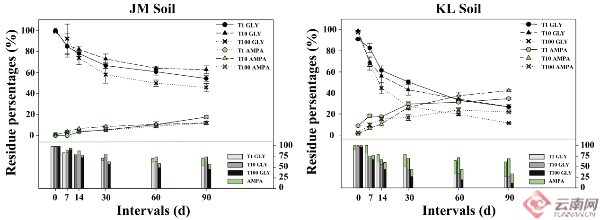 草甘膦是全球使用最广泛的广谱除草剂,因其高效性和低成本被广泛应用于农业生产,但其环境残留及潜在生态风险引发广泛关注。该研究发现,草甘膦在茶园土壤中的降解符合双一阶平行降解模型,呈现初期快速降解和后期缓慢降解的特征。在不同性质的茶园土壤中,其降解速率差异显著,半衰期从12.7天到268天不等。茶园土壤的酸性和较高的有机质含量可能导致草甘膦形成固定残留,阻碍微生物降解,同时主要代谢产物氨甲基膦酸(AMPA)表现出更高的持久性,构成潜在生态风险。