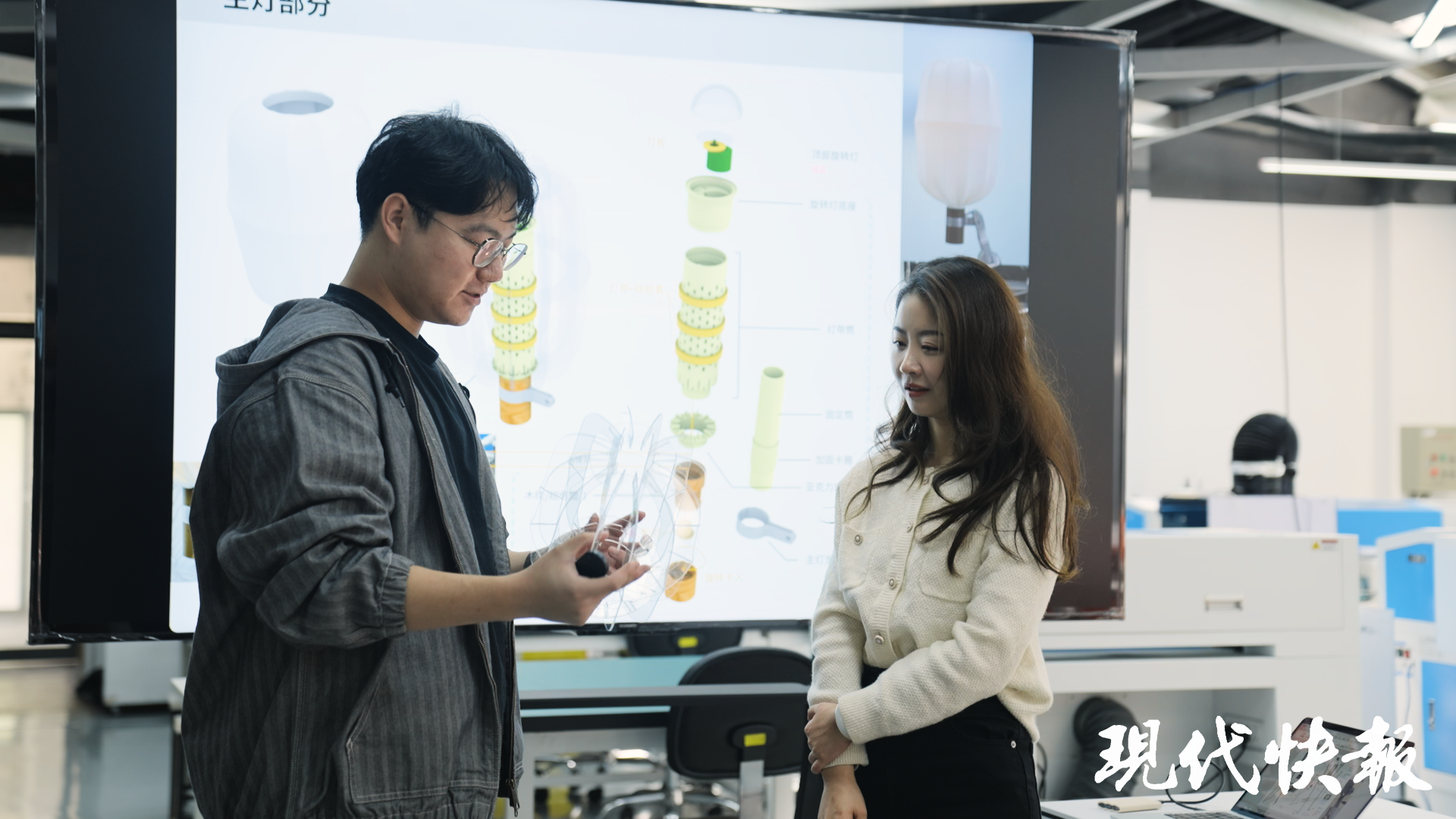 目前,这组落地灯都正在外展出,更成为前不久2024“中国南京周”“锦绣文都·与世界共经纬”艺术展览的打卡点,连法国第一夫人布丽吉特·马克龙都为之点赞。作品的备受认可让吴冬玥发现,中华优秀传统文化就是链接工业设计与文创的一道大门,如何把横平竖直的线条转化成“烟火气满满”的日用文创,这是留给年轻设计师的一道题。