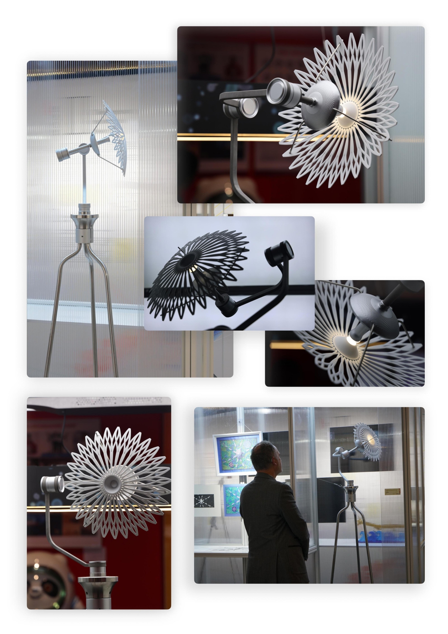 另一款落地灯则是取材中国传统非遗滚灯,光与火的轮转,向阳而生的造型,由吴冬玥的同学袁艺玮、张可妍与导师张明以及老师黄亦佳、朱文翰、徐博文共同完成。“来自劳动人民的造物智慧与中国传统设计思维深深地打动了我,设计的过程也是成长与进步的过程。”吴冬玥说。