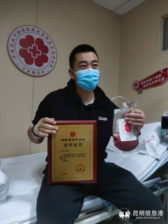 昆明信息港讯 记者李红鸾 11月26日上午,在昆明一医院,一位90后的的云南小伙小刘历经5个多小时的采集,为一名血液病患者成功捐献造血干细胞,成为云南省第421例造血干细胞捐献者。