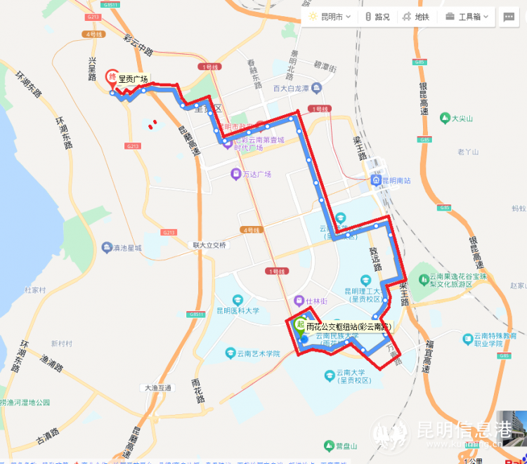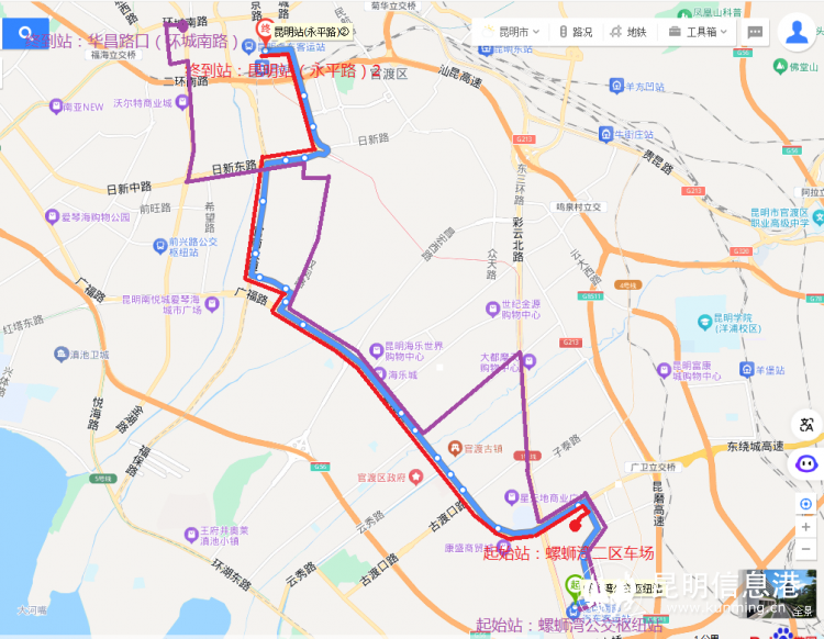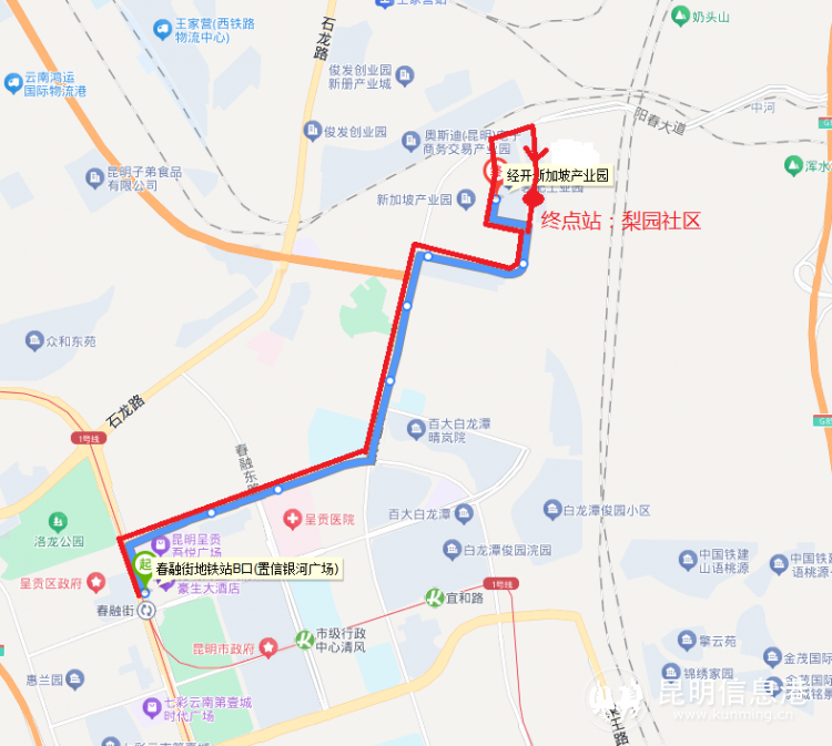 198路终到站延长至“子君村(彩云北路)”公交站,与地铁1号线星耀路站无缝接驳