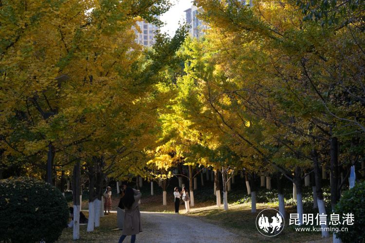 据介绍,呈贡区域内金黄银杏分布在多个地点,且各具特色。春融街与和谐路交叉口北的春融公园内道两旁,银杏植株高大;市级行政中心多幢楼宇外围绿地,银杏铺满草地;雨花街道回回营社区,银杏林成片生长;洛龙公园东北角儿童游乐场旁,银杏造景。这些绝佳的赏“杏”点位串连成线,市民游客可骑车、漫步,依次打卡。