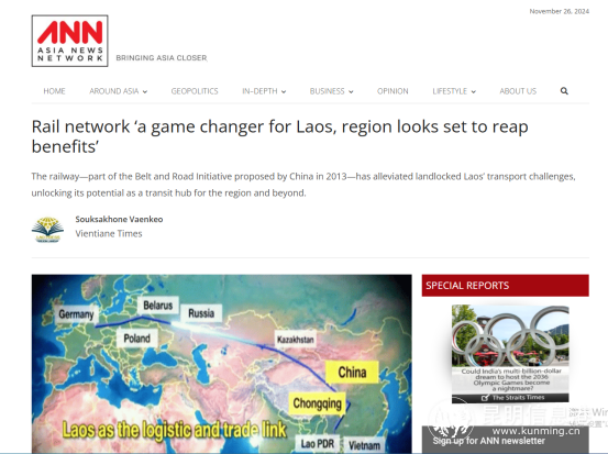 《亚洲新闻网》8月6日以《铁路网络改变老挝格局 区域发展前景广阔》为题,深入剖析中老铁路对老挝交通体系和区域经济的深远影响。报道中提出,中老铁路的开通,彻底改变了老挝的交通面貌,推动其经济多元化与现代化进程。同时,这条铁路还加强了老挝与周边国家的紧密联系,为区域经济的共同繁荣注入新的活力与希望。