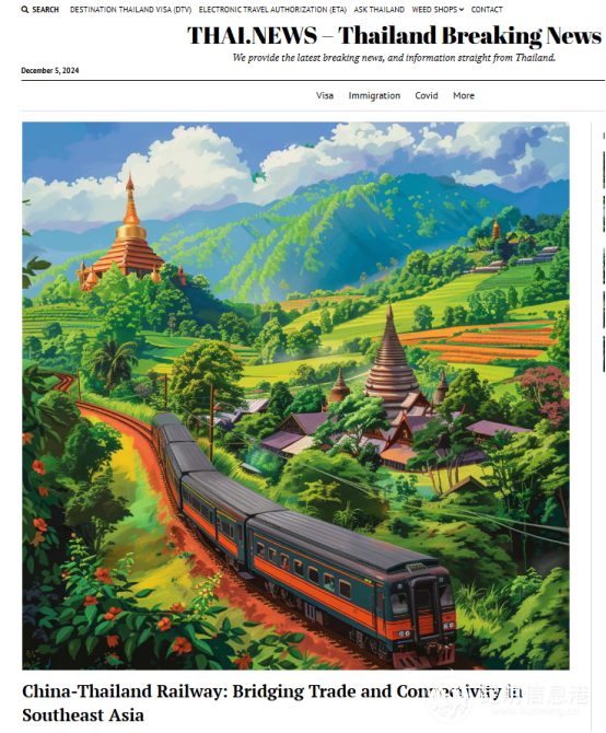 泰国《突发新闻》11月23日以《中泰铁路:未来贸易的新纽带》为题,展望了中泰铁路的美好前景。报道中称,即将全线通车的中泰铁路将成为连接中国与泰国的重要贸易通道,其与中老铁路的无缝对接,将进一步推动中国与东盟之间的贸易合作与经济交流,为区域经济的繁荣发展注入新的动力与活力。