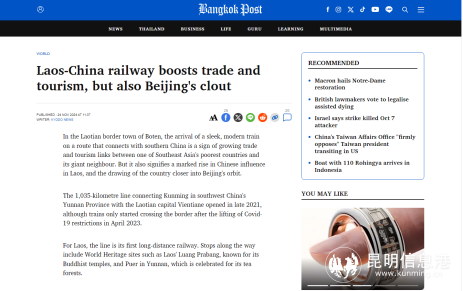 泰国《曼谷邮报》11月24日刊发《中老铁路:贸易旅游的催化剂,中国影响力的增强者》的报道,探讨了中老铁路对区域政治经济格局的深远影响。报道指出,中老铁路的开通不仅极大促进了中老两国的贸易与旅游往来,还显著增强了中国在东南亚地区的影响力。这条铁路线不仅紧密连接起中老两国人民的心,更成为中国“一带一路”倡议在东南亚地区的重要支点与亮丽名片。