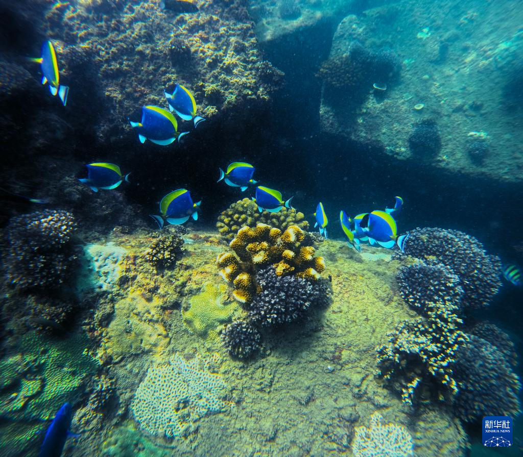 这是2024年11月在斯里兰卡科伦坡港口城防波堤内拍摄的海底珊瑚和鱼群。新华社发(科伦坡港口城供图)
