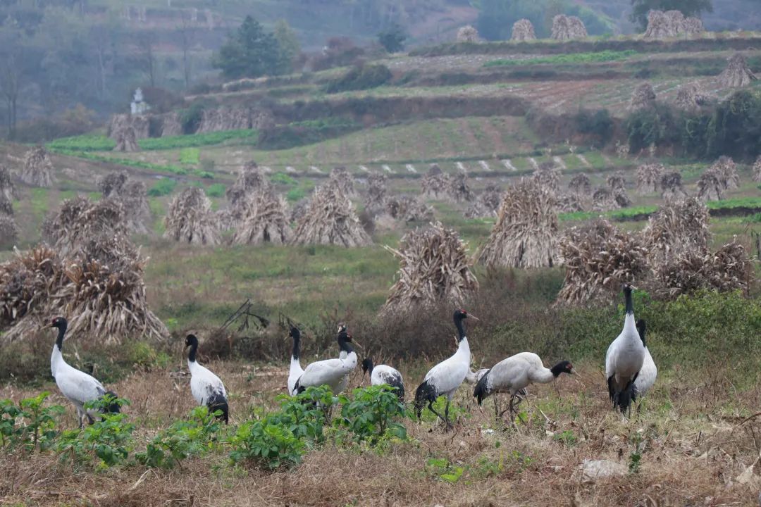 大雪节气前后,大关县靖安镇碧凹村迎来了迁徙越冬的黑颈鹤。作为国家一级保护动物,这些“稀客”的到来,宛如精灵降临,为这片土地增添了一抹亮色。