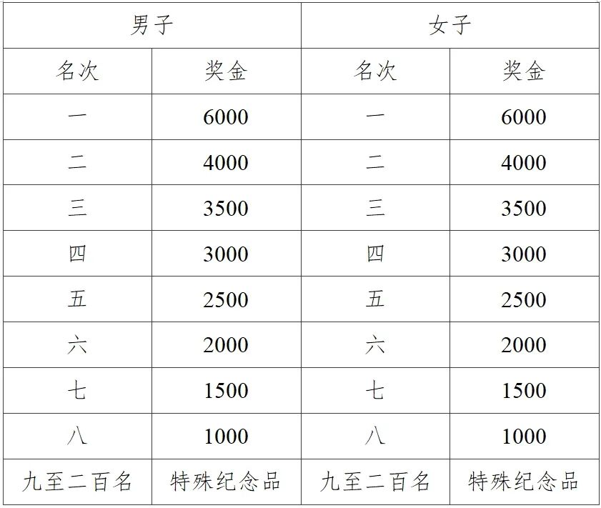 (一)马拉松(42.195公里):1500人