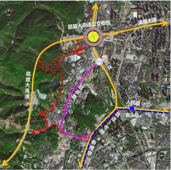 规划地块东至西三环与春雨路、南至昭宗路、西至昭宗水库、北至昆楚大高速立交枢纽。整体用地面积约196.72公顷,规划用地97宗,包括纯住宅用地31宗、商业用地3宗、商业住宅混合用地3宗等。
