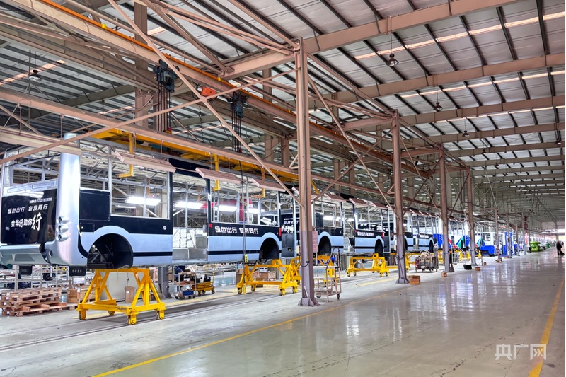 客车成品驶出车间(央广网记者 杨贇 摄)