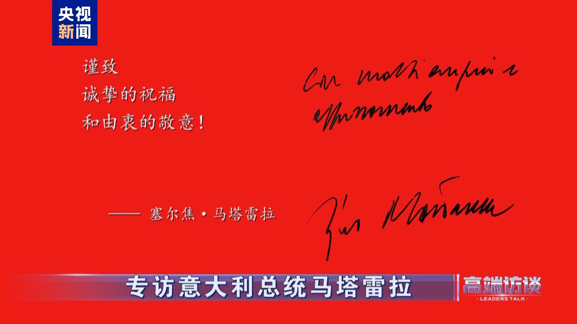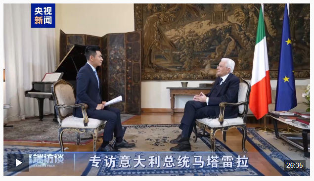 在专访中,马塔雷拉总统用“友谊”定义两国关系,他对中国文化历史表现出浓厚的兴趣。在他看来,中国开放的态度以及与各方合作的意愿,都反映出中国在面对当前世界动荡时的格局与胸怀。展望未来,他希望意大利在文化、科技、航天等领域同中国密切合作,为促进世界和平与稳定贡献智慧。