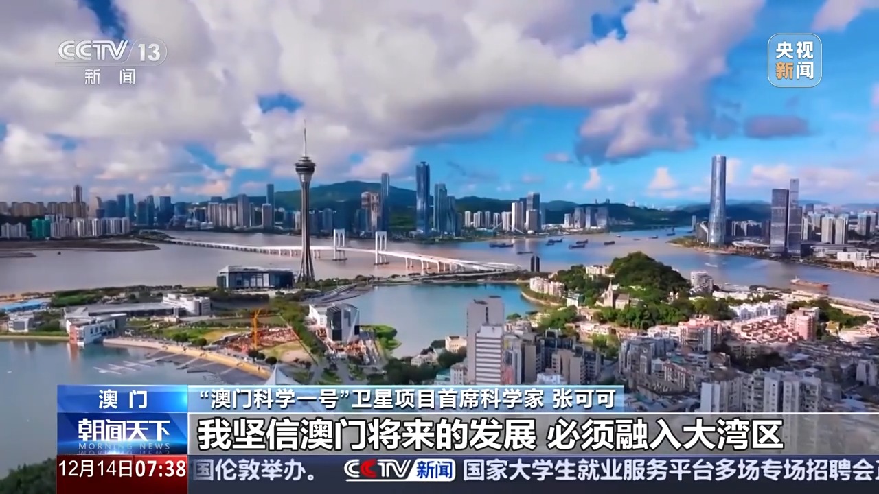 “澳门科学一号”卫星项目首席科学家 张可可:专门组织科学研讨会,人家甚至跑到这里开全世界的科研研讨会。用事实来说明这颗卫星是成功的,是对澳门的认可,更是对中国的认可。