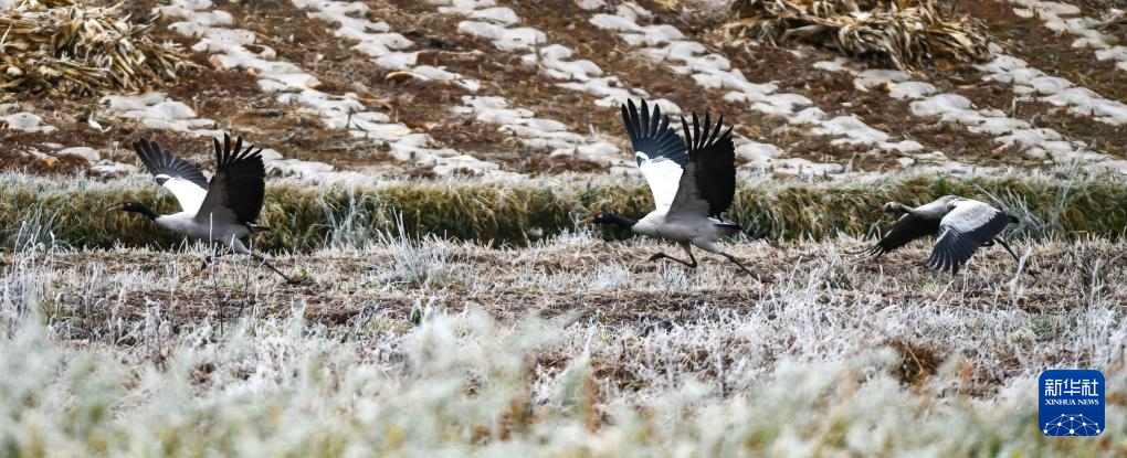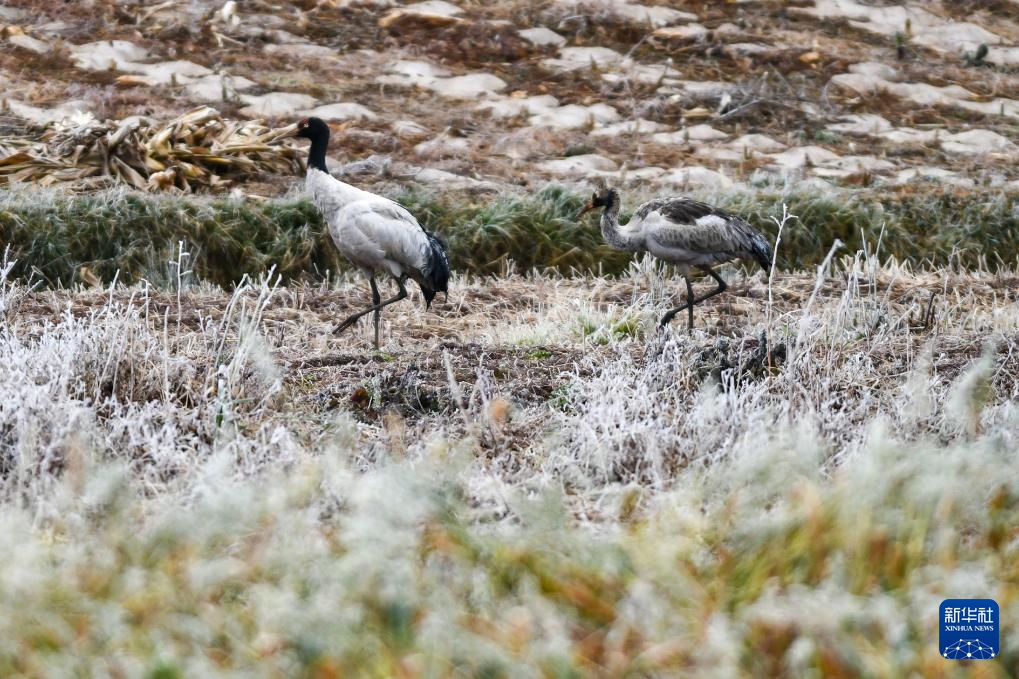 在会泽黑颈鹤国家级自然保护区拍摄的黑颈鹤(12月14日摄)。新华社记者 王静颐 摄