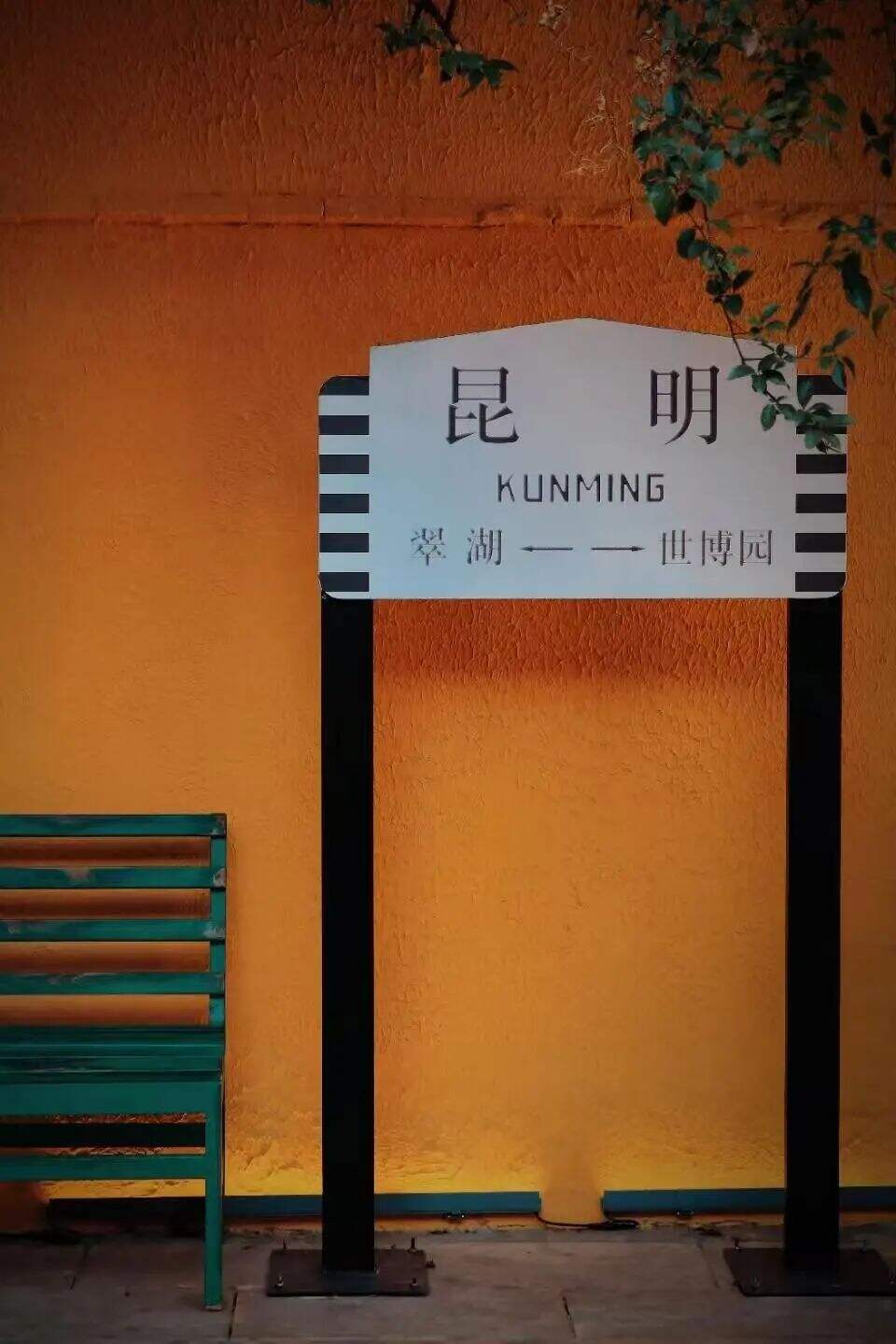 这处打卡点就在翠湖南路上,“昆明”二字被繁花包围,很有春城特色。这里还有一张长椅等你来坐,随便一摆都很有氛围感!