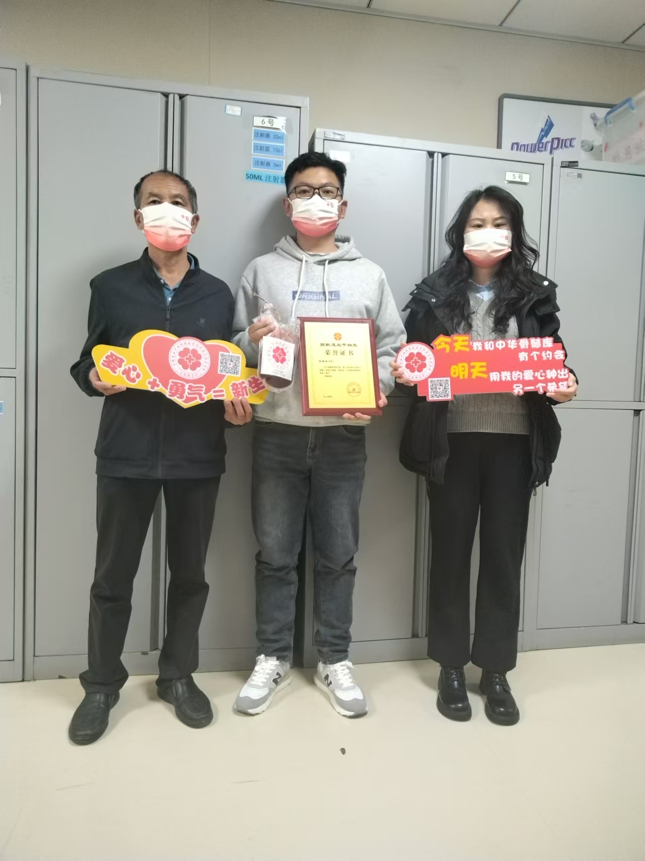 张先生(中)成功捐献造血干细胞
