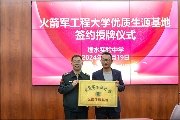 12月19日,中国人民解放军火箭军工程大学(以下简称为“火箭军工程大学”)云南招生宣传组到访红河建水实验中学,开展国防教育专题讲座并举行“优质生源基地”签约授牌仪式,正式开启双方在国防人才培养领域的深度合作。
