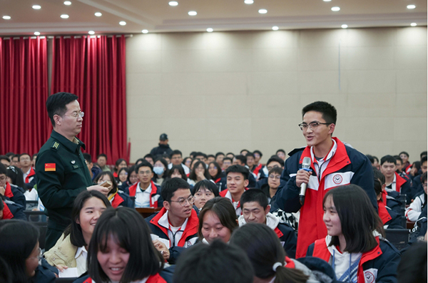 签约仪式后,火箭军工程大学云南招生宣传组在学校礼堂为学生代表带来了一场精彩的国防教育专题宣讲。宣讲老师紧密结合国际形势,深入剖析我国战略导弹的科技实力与未来发展趋势,详细介绍了火箭军工程大学的办学历史、教育理念、师资力量、科研资源以及专业特色,让同学们对国防科技前沿与军校学习生活有了更全面深刻的认知。在现场互动环节,宣讲老师耐心解答同学们的疑问,并发放了纪念礼品,进一步激发同学们报考军校、投身国防事业的热情与决心。