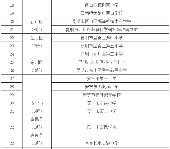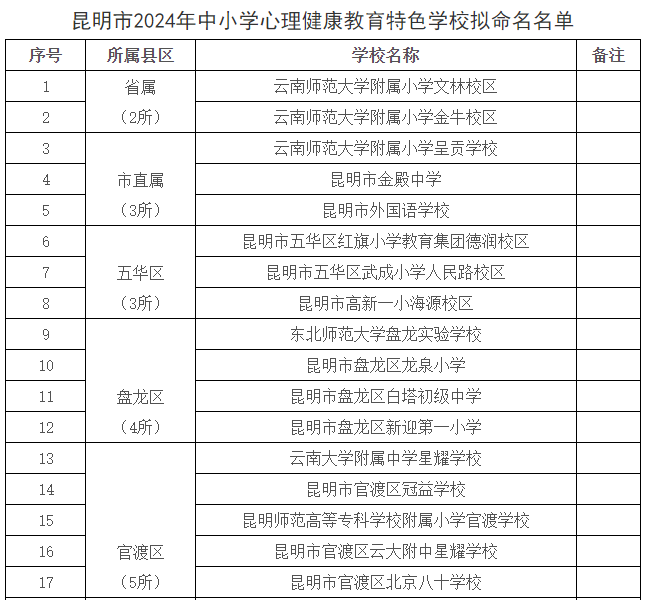 附昆明市2024年中小学心理健康教育特色学校拟命名名单