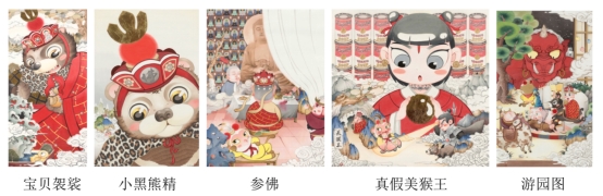 比如在《圣诞小人的后花园》里,东方的师徒四人遇上了圣诞节,也会对五颜六色的礼物感到好奇和开心,而背后那个斜着眼睛静静观察的圣诞小人,仿佛才是这场欢乐的操控者,不然唐僧为什么会悄悄地从他的袋子里钻出来呢?