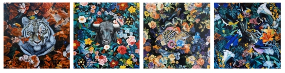 除了岳俊东的作品,本次画展还有许多实力强劲、风格独特、个性十足的艺术家作品助阵。艺术家戴大山的作品中,有着各种天马行空的建筑,给欣赏者们创造了很多想象的空间;艺术家罗伟学自然原始的野生动物,与中国民俗文化相结合的《十二生肖》,向人们展示了蓬勃又极具张力的自然美;宋磊老师笔下的各种女性人物,与自然场景结合呈现的文艺气质、温婉形象,表达了她对人与自然和谐相处的愿景;还有艺术家刘迪带着各种豪车奔驰于不同城市的大街小巷之中,肆意奔放,时尚前卫,能感染到每一位同样热爱都市生活的欣赏者。如果你也喜欢艺术,那么这场画展一定会给你很多惊喜。