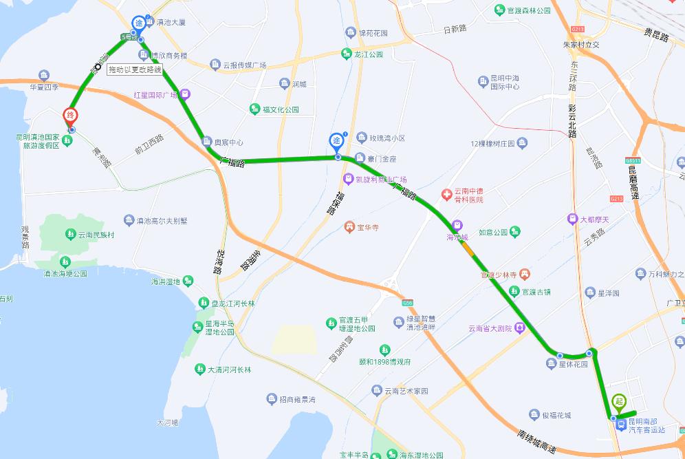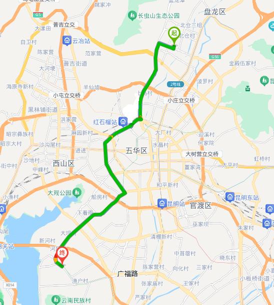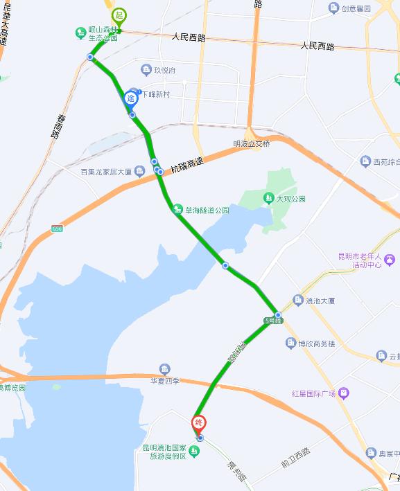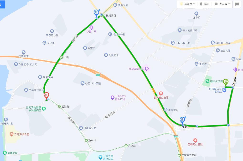 前兴路公交车场——迎海路口(滇池路)(直达车)。