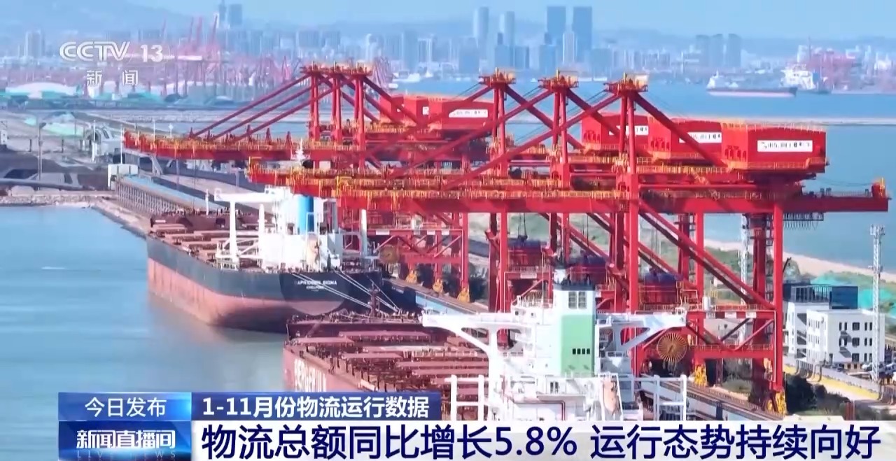 前11个月社会物流总额超320万亿元 同比增长5.8%
