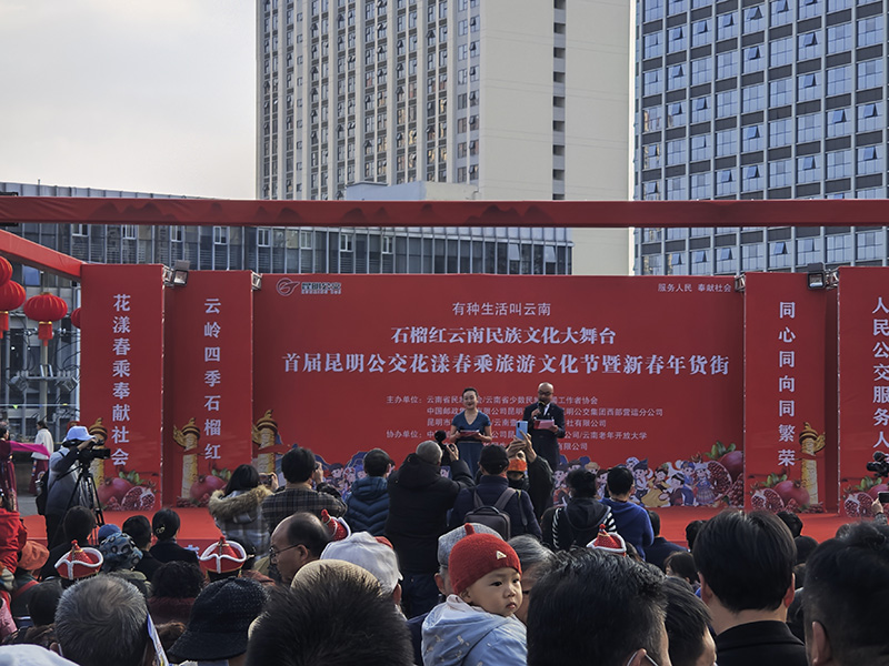 “有种生活叫云南”石榴红云南民族文化大舞台首届公交花漾春乘旅游文化节暨新春年货街活动开幕