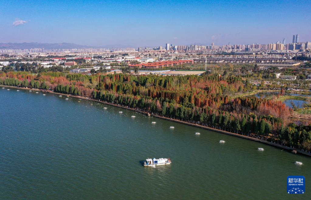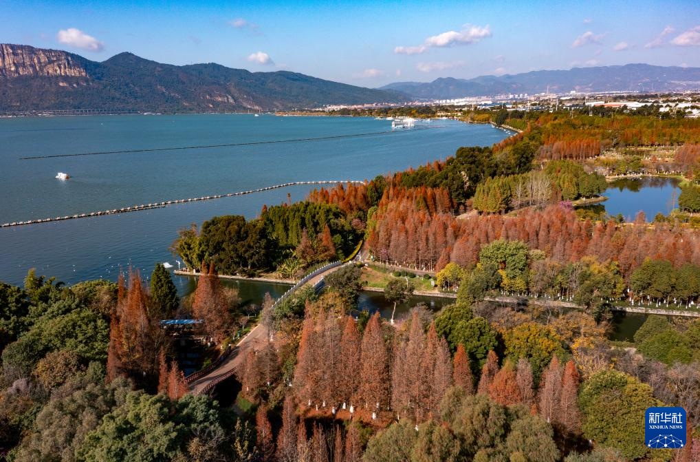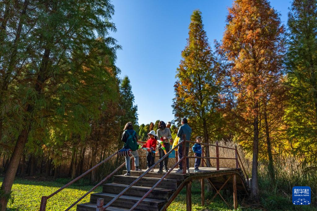 近期,云南省昆明市滇池沿岸各湿地公园内,水杉迎来最佳观赏期。在冬日暖阳的映照下,水杉林色彩斑斓,仿佛一幅幅浓墨重彩的油画,吸引众多游客前来打卡。