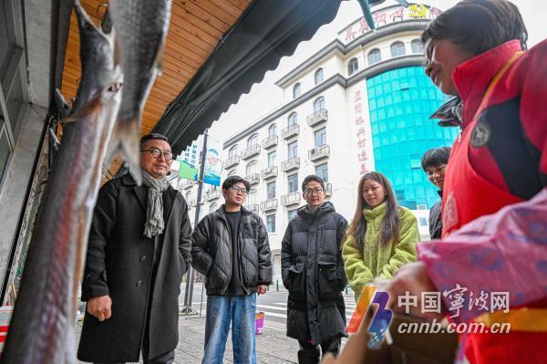 参与联合毕业设计的大学生和高校导师走进宁海强蛟镇进行风鳗调研。(王嘉彬 摄)