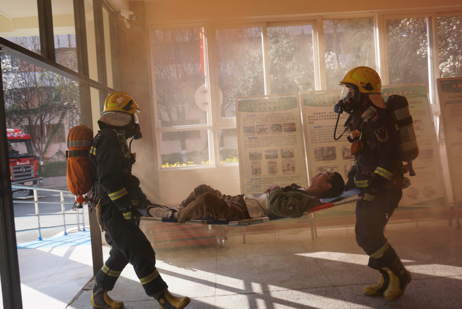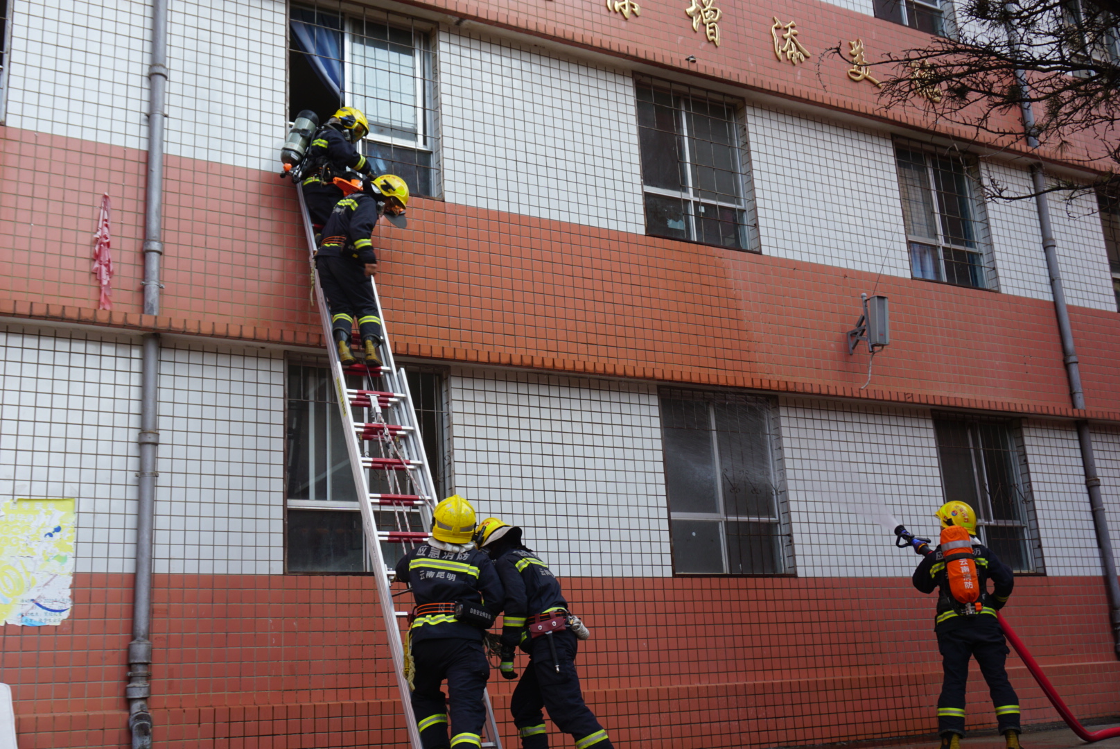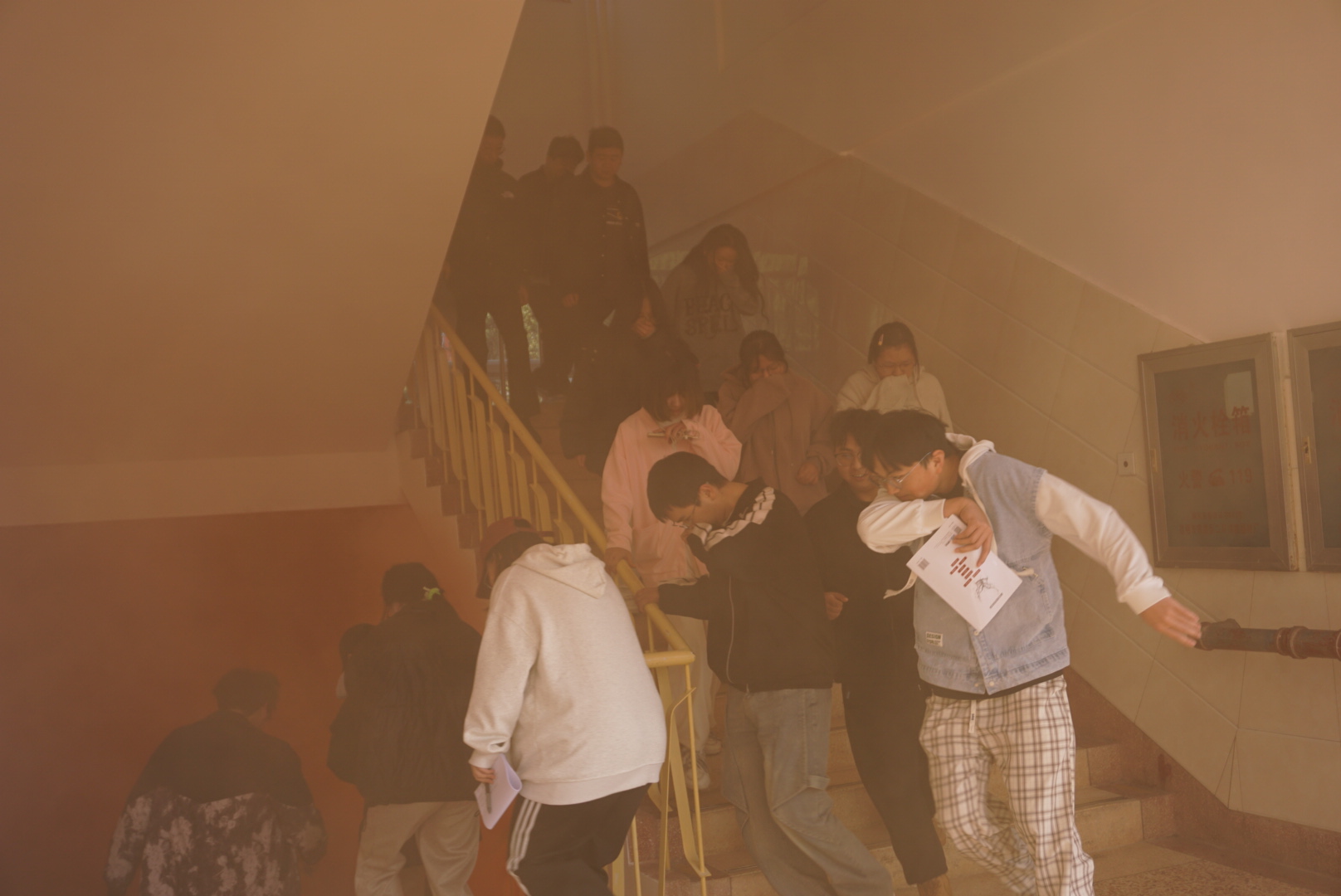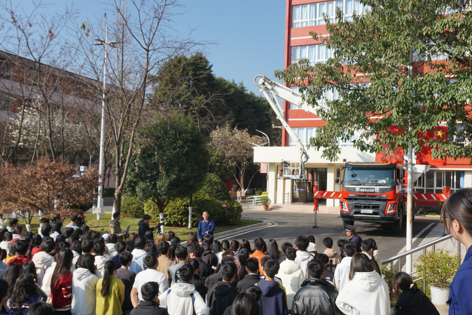 “现在模拟我们的教学楼发生了火灾,请大家有序通过楼梯前往安全区域。”知识讲座结束后,在盘龙区消防救援大队龙泉站消防员的配合下,开展了楼道逃生、登高救援、破窗拆网几项现场实景演练活动。