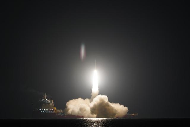 2024年12月19日,来自北京的民营火箭公司星河动力航天公司于山东附近海域,圆满完成谷神星一号海射型(遥四)发射任务。新华社发(郭金祺 摄)