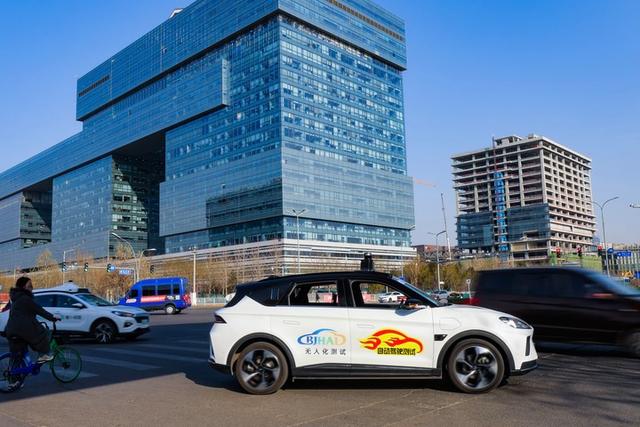车内无人自动驾驶测试车辆在北京亦庄公开道路测试。(受访者供图)