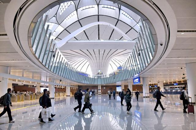 2024年12月27日,外国游客在北京大兴机场边检大厅准备入境。新华社记者 鞠焕宗 摄