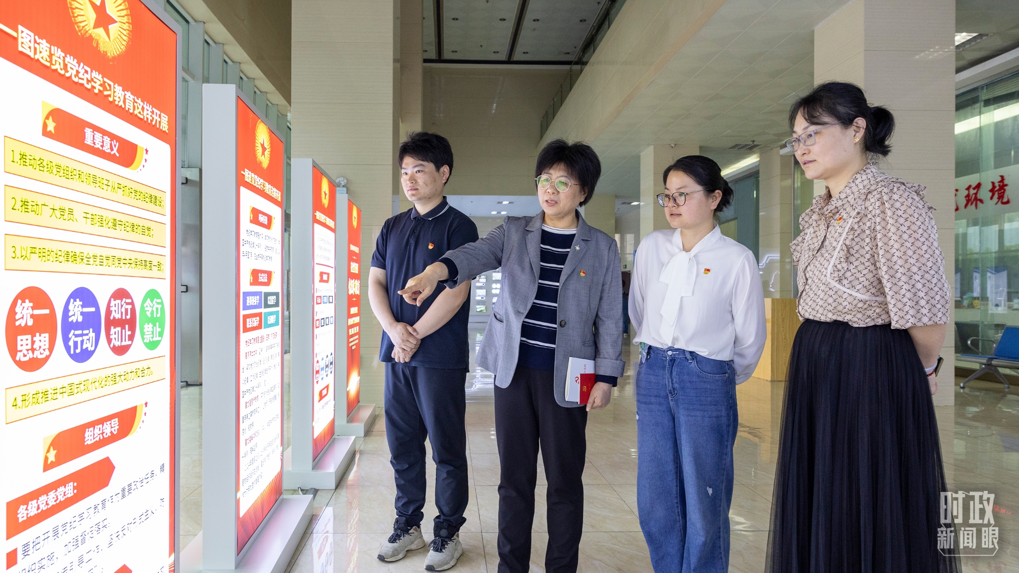 △2024年5月11日,安徽合肥党员干部在党纪学习教育期间观看相关展板。(图/视觉中国)