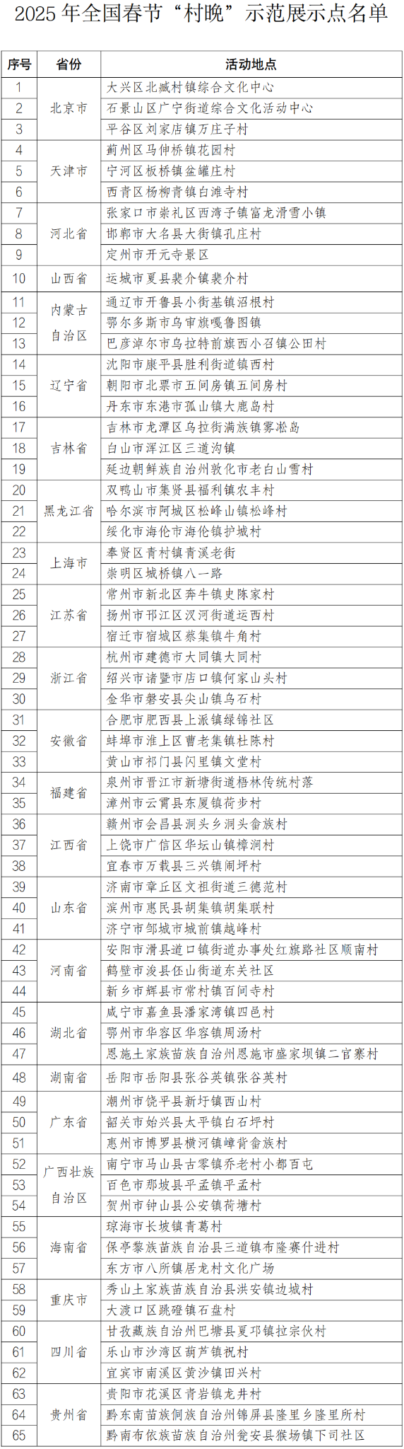 1月7日,文化和旅游部公布了2025年全国春节“村晚”示范展示点名单,其中云南省西双版纳傣族自治州景洪市基诺山基诺族乡民族文化广场、楚雄彝族自治州大姚县金碧镇李湾社区东塔湖湿地公园、大理白族自治州祥云县禾甸镇七宣村3地上榜。